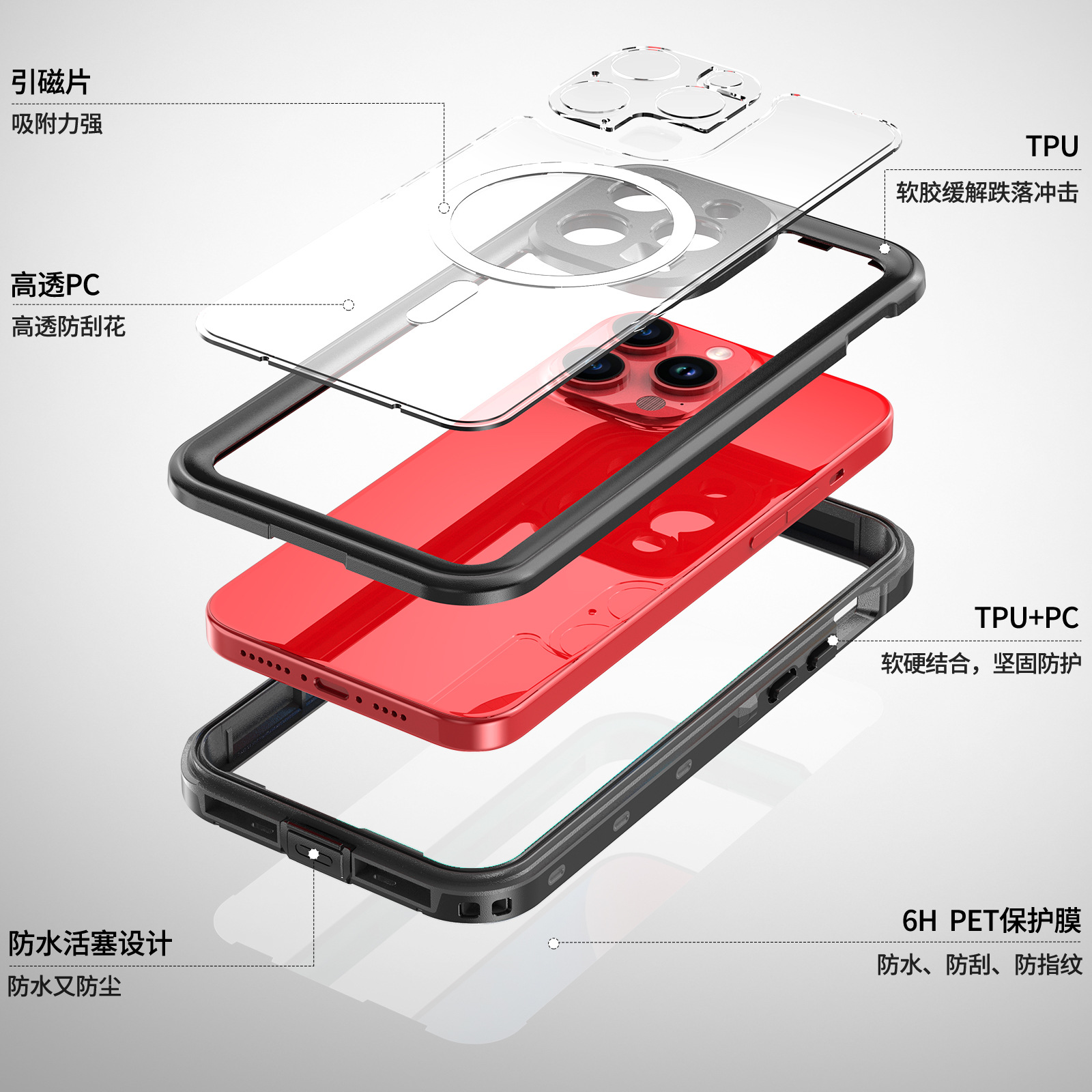 Waterproof wireless charging magnetic phone case for iPhone 14 Pro/15 Pro